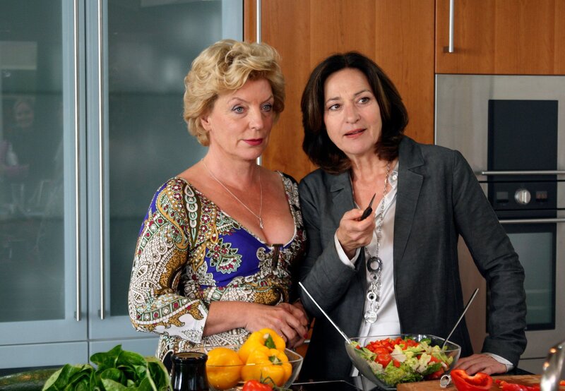 Bei dem lebenserfahrenen Witwer Gustav Wittke (Georg Tryphon) können Mary-Lou (Peggy Lukac, re.) und Hanne (Charlotte Schwab), die sich von ihren Männern vernachlässigt fühlen, ihr Herz ausschütten.