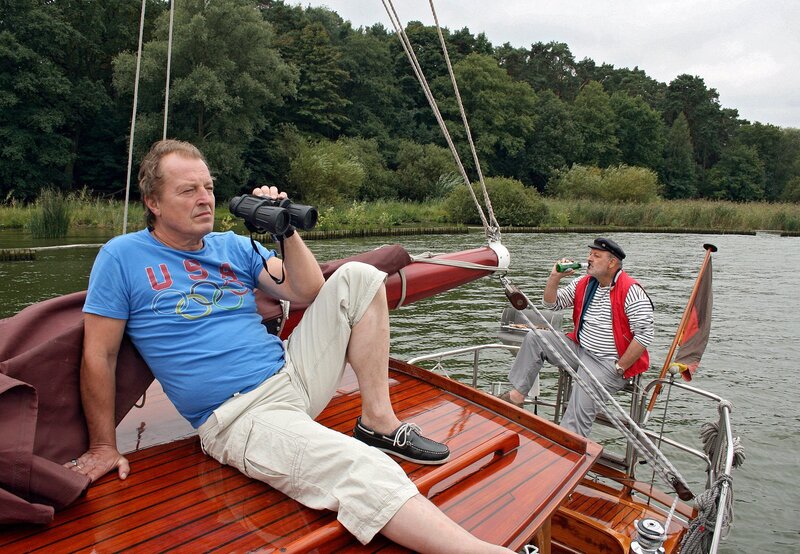 Endlich richtig Zeit! Nachdem die besten Freunde Klaus und Fred den wohlverdienten Vorruhestand angetreten haben, wollen sie sich mit ihren Frauen den schönen Dingen des Lebens widmen. Allerdings weichen die großen Pläne sehr schnell einem wenig aufregenden Alltagstrott, bis Klaus und Fred bei einer Segeltour auf dem Wannsee eine in Seenot geratene junge Frau retten: Die hochschwangere Franziska wurde von ihrem Freund sitzen gelassen und weiß nicht, wohin. Kurz entschlossen bieten die zwei ihr an, vorerst auf ihrem Segelboot zu wohnen. Ihren Ehefrauen erzählen sie vorsichtshalber nichts von der guten Tat - kein cleverer Schachzug, denn schon bald verstricken die beiden väterlichen Samariter sich in einem Gewirr aus Ausflüchten und Schwindeleien. Die Familienkomödie "Im besten Alter" zeigt Paul Faßnacht und Leonard Lansink als Freunde zwischen guter Tat und schlechtem Gewissen. Die weiblichen Hauptrollen spielen Charlotte Schwab, Peggy Lukac und Josefine Preuß. * Wer rastet, der rostet - so besagt es zumindest eine alte Weisheit. Aus diesem Grund haben die besten Freunde Klaus (Paul Faßnacht) und Fred (Leonard Lansink) sich für ihre Zeit im Vorruhestand auch einiges vorgenommen. Ihr gemeinsames Hotel haben sie schweren Herzens, aber gewinnbringend verkauft, nun wollen sie mit ihren Ehefrauen Mary-Lou (Peggy Lukac) und Hanne (Charlotte Schwab) das Leben genießen und sich ein paar lang gehegte Wünsche erfüllen. Soweit die Theorie. In der Realität sieht das Ganze so aus, dass Klaus und Fred einen Großteil ihrer Zeit auf dem gemeinsamen Segelboot auf dem Wannsee verbringen, während ihre Frauen genervt zu Hause sitzen und sich hoffnungslos vernachlässigt fühlen. Aber auch den beiden Möchtegern-Seebären wird es bei Bier und Bratwurst auf ihrem rausgeputzten Kahn allmählich immer langweiliger. Bis sie eines Tages einer jungen Frau in Seenot zu Hilfe kommen müssen: Die 20-jährige Franziska (Josefine Preuß) ist hochschwanger und wurde über Nacht von ihrem Freund sitzen gelassen. Nun steht sie ohne Job, ohne Wohnung und ohne Perspektive da und weiß nicht, wohin. Fred reagiert zunächst etwas ruppig auf den ungebetenen Gast und möchte das Mädchen am liebsten schnell wieder an Land bringen. In Klaus hingegen, der sich immer Kinder gewünscht hatte, erwacht der väterliche Gentleman. Er kann seinen Freund überzeugen, Franziska Unterschlupf auf dem Boot zu gewähren. Auch sonst würde er sich gerne um die verzweifelte junge Frau kümmern und dafür sorgen, dass sie ihr Baby nicht zur Adoption freigeben muss. Seiner Frau Mary-Lou erzählt er von der Hilfsaktion allerdings ebenso wenig wie Fred seiner Hanne - die Damen sollen sich ja keine unnötigen Gedanken machen. Das tun sie allerdings sowieso nicht. Vielmehr beschließt Mary-Lou, sich eine Aufgabe zu suchen, und so kümmert sie sich um den leicht exzentrischen Senioren Gustav Wittke (Georg Tryphon), während Hanne in dessen Arzt Hans Schuster (Robert Meller) einen sensiblen Verehrer findet, der ihr all die Aufmerksamkeit schenkt, die sie bei Fred so schmerzlich vermisst. Unterdessen hat Klaus noch einen ganz anderen Grund, das plötzliche Auftauchen von Franziska vor seiner Frau geheim zu halten - ein Grund, der bis zu einem 21 Jahre zurückliegenden Fehltritt zurückreicht. Zwei Männer in den besten Jahren finden sich in der besinnlichen Familienkomödie "Im besten Alter" plötzlich in einer ungewohnten Rolle wieder: Als Ersatz-(Groß)Papas müssen sie sich um eine hochschwangere junge Frau kümmern. Paul Faßnacht und Leonard Lansink spielen die beiden alternden Samariter als ungleiches Duo mit einer herrlichen Mischung aus sympathischer Grantigkeit und väterlicher Fürsorge. Die gewitzten Ehefrauen der beiden werden von Charlotte Schwab und Peggy Lukac verkörpert. In der Rolle der jungen Mutter ist Nachwuchsstar Josefine Preuß ("Türkisch für Anfänger") zu sehen.