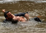 Als Vic (Stephan Luca) mitten im Dschungel ein eigenartiges Geräusch hört, ist er überzeugt, dass es seine Verfolger sind - und schlägt zu. Unglücklicherweise haut er Lisa k.o. ...Bild: © TVP