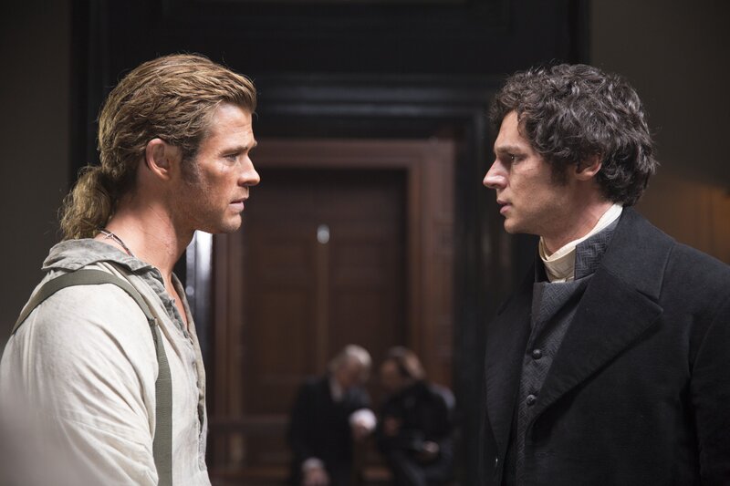 19 Jahre lang ist die Essex nun schon auf See. Zeit für das Walfang-Segelschiff aus Neuengland, in den Ruhestand zu treten. 1820 bricht der junge und arrogante Kapitän George Pollard mit der Essex zum letzten Mal in den Pazifik auf. Mit an Bord als Erster Offizier ist der erfahrene Owen Chase (Chris Hemsworth). Von dem Kapitän eines anderen Walfängers erfährt die Besatzung der Essex, dass ein angriffslustiger Pottwal in den Gewässern sein Unwesen treibt. Tatsächlich wird das Schiff von Kapitän Pollard wenig später von dem riesigen Wal gerammt und kentert. Verzweifelt versuchen die zwanzig Männer in drei kleinen Fangbooten, Land zu erreichen. Durch den von Stürmen, Regen und Wind verursachten heftigen Seegang kommen sie immer wieder vom Kurs ab. Zudem bieten die offenen, zerbrechlichen Boote keinerlei Schutz. Als die Lebensmittel zu Neige gehen, gibt es die ersten Toten. Die zerstrittenen Pollard und Chase gehören zu den letzten Überlebenden. Da entschließt sich der Kapitän zu einer Verzweiflungstat. Der Abenteuerfilm "Im Herzen der See" beruht auf den Erzählungen von Owen Chase, die dieser 1821 in Buchform veröffentlichte. Jahre später verarbeitete der Schriftsteller Herman Melville das Schicksal der Essex zu seinem Klassiker "Moby Dick". In dem Film ist zu sehen, wie sich Melville die Geschichte von einem Überlebenden erzählen lässt. Inszeniert wurde das mit spektakulärer Tricktechnik ausgestattete Seefahrerdrama von dem zweifachen Oscar-Gewinner Ron Howard ("A Beautiful Mind"). Die grandiosen Außenaufnahmen fanden vor den Kanarischen Inseln statt. Für seine Rolle als Obermaat Chase musste Action-Star Chris Hemsworth ("Thor") sein Körpergewicht um 20 Kilo reduzieren.