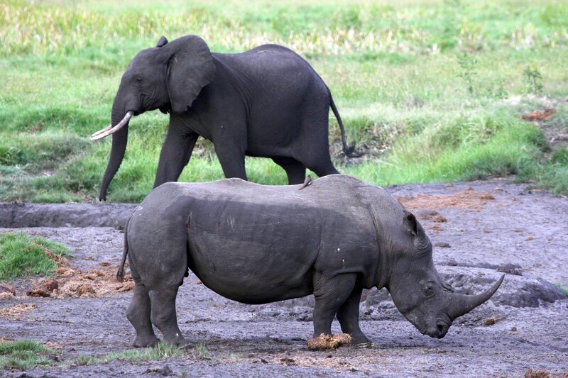 Elefant und Nashorn auf der Suche nach Wasser.Bild: © ORF