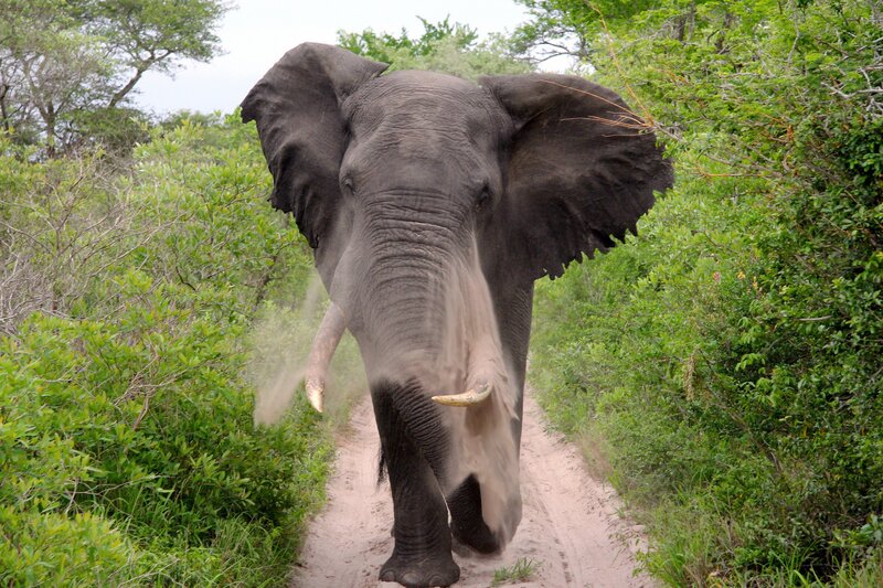 Elefantenbulle in Angriffslaune.Bild: © ORF