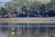 Hippo mit Graureiher und Flamingos im Anflug.Bild: © ORF