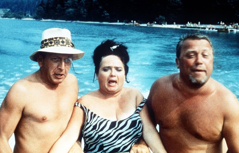 ARD IM SINGENDEN RÖSSEL AM KÖNIGSSEE, Österreich 1963, Regie Franz Antel, am Freitag (16.03.12) um 10:35 Uhr im Ersten. "Im singenden Rössl am Königssee" ist ein mit Schlagern angereicherter Verwechslungsschwank vom Regie-Routinier Franz Antel. Von links nach rechts: Onkel Simon (Oskar Sima), Fran (Peter Weck) und Cordula (Waltraut Haas).Bild: © rbb/Degeto
