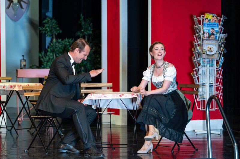 Turbulente Operetten-Komödie im Salzkammergut: Im weißen Rössl entführt an den Wolfgangsee, wo sich inmitten malerischer Berge und idyllischer Landschaft eine spritzige Mischung aus Intrigen, Romantik und Missverständnissen entspinnt. Jan Philipp Gloger beleuchtet mit feinem Humor und scharfsinnigem Blick die Herausforderungen des modernen Tourismus und zeigt, dass hinter der perfekten Fassade oft ganz andere Geschichten lauern. Musikalisch begeistert die Revue-Operette mit einem bunten Potpourri aus Jazz, Walzer, Marsch und Wienerlied - ein Feuerwerk für Kenner und Neulinge! Jakob Semotan begeistert als charmant-tollpatschiger Oberkellner Leopold, während Annette Dasch als resolute Rössl-Wirtin Josepha Vogelhuber glänzt. David Kerber überzeugt als weltgewandter Anwalt Dr. Siedler, und Oliver Liebl sorgt als sein verschrobener Gegenspieler Sigismund Sülzheimer für komödiantische Highlights. Julia Edtmeier verleiht als liebenswerte Klärchen der Inszenierung romantische Momente, während Harald Schmidt als ihr Vater mit spritzigem Wortwitz punktet. Für kaiserliche Würde und heitere Ordnung sorgt Robert Palfrader als Kaiser Franz Joseph.