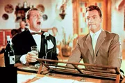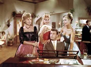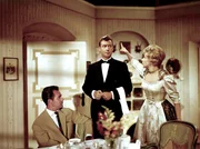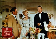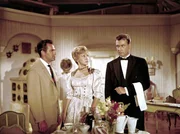 Der verliebte Oberkellner Leopold (Peter Alexander, re.) sieht es gar nicht gerne, dass Dr. Siedler (Adrian Hoven) mit seiner Chefin Josepha (Waltraut Haas) flirtet.