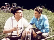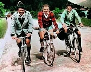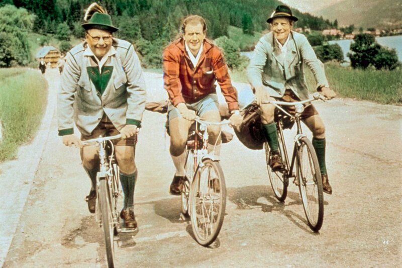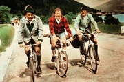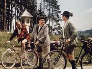Kräftig in die Pedale treten: Die 3 ehemaligen Schulkameraden Fritz Eilers (Heinz Erhardt, Mitte), Ulrich Salandt (Hans-Joachim Kulemkampff, li.) und Johannes Büttner (Wolf Albach-Retty). Weiteres Bildmaterial finden Sie unter www.br-foto.de.