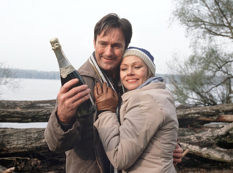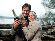 Die Versöhnung muss gefeiert werden: Frijo (Helmut Zierl) und Maja (Jennifer Nitsch) lassen die Korken knallen.Bild: © HR/Degeto/Katrin Knoke