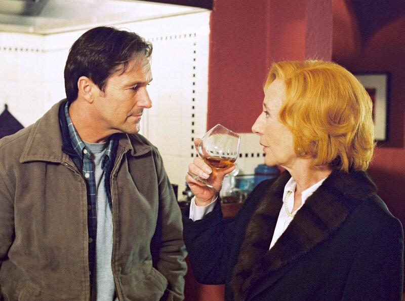 Von ihrem Kollegen Christian (Martin Ontrop) bekommt Maja (Jennifer Nitsch) erste Hinweise auf das dunkle Familiengeheimnis ihrer Mutter.; Rüstige Rentnerinnen: Charlotte von Wiesenthal (Rosemarie Fendel) besucht ihre treue Haushälterin Sophie (Christel Peters, rechts) im Krankenhaus.; Ob Majas (Jennifer Nitsch, rechts) Ex-Freund auf diesen Typen eifersüchtig wäre? Schon wieder präsentiert Charlotte (Rosemarie Fendel) ihrer Tochter einen potenziellen "Scheinliebhaber" (Felix Bresser).; Ein Tänzchen in Ehren: Maja (Jennifer Nitsch) flirtet mit ihrem Kollegen Nick (Florian Fitz).Bild: © ARD Degeto/BR/Katrin Knoke/Katrin Knoke