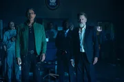 Stellen sich gemeinsam einem erneuten Angriff der Aliens: General Adams (William Fichtner, 2.v.l.), David Levinson (Jeff Goldblum, 2.v.r.) und Alienologe Dr. Brakish Okun (Brent Spiner, r.) ...Bild: © 2016 Twentieth Century Fox Film Corporation. All rights reserved. Lizenzbild frei