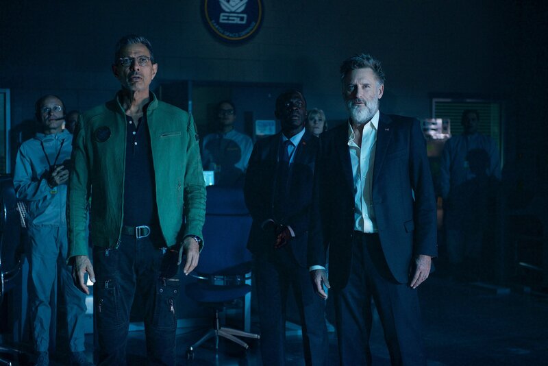 Als in der Verteidigungsbasis auf dem Mond ein riesiges, rundes Raumschiff auftaucht, ahnen David Levinson (Jeff Goldblum, l.) und Präsident Whitmore (Bill Pullman, r.) nicht, welche Geheimnisse dieses beinhaltet ...Bild: © 2016 Twentieth Century Fox Film Corporation. All rights reserved. Lizenzbild frei