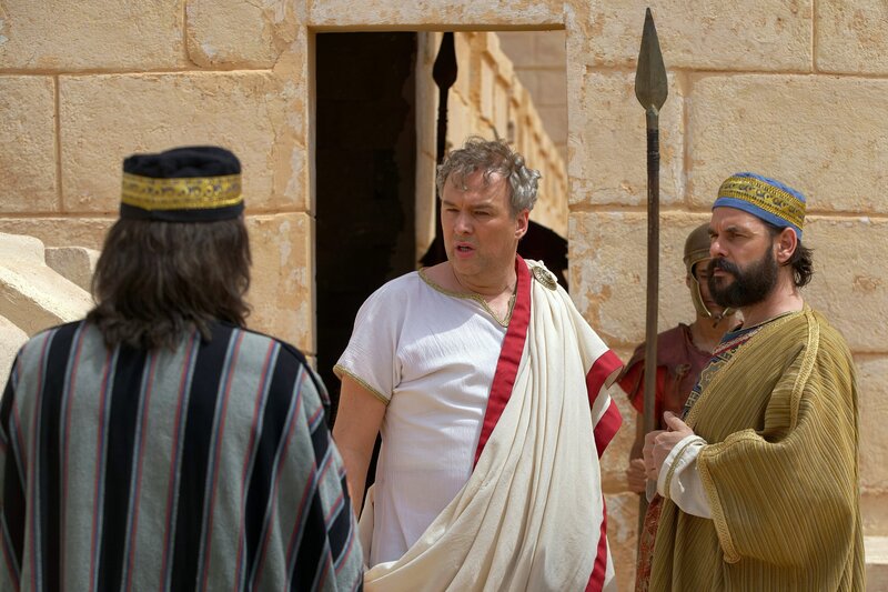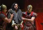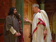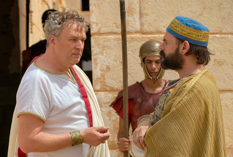 Nach seiner Verhaftung wird Jesus (Eidin Jalali, l.) von Pontius Pilatus (Stephan Grossmann, r.) der Prozess gemacht. Dieser war 26 unserer Zeitrechnung von Kaiser Tiberius zum Präfekten von Judäa ernannt worden.