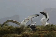 Wanderalbatrosse bei der Balz. Die Partnersuche erstreckt sich über Jahre, dann bleibt das Paar lebenslang zusammen.Bild: © BR/Roland Gockel