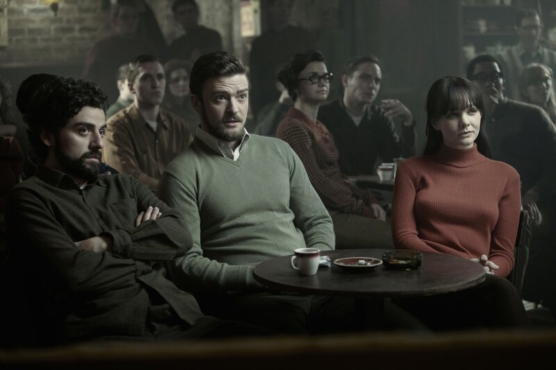 Llewyn Davis (Oscar Isaac, links), Jim Berkey (Justin Timberlake, mitte) und Jean Berkey (Carey Mulligan, rechts) im ber¸hmten Gaslight CafÈ.Bild: © KinoweltTV
