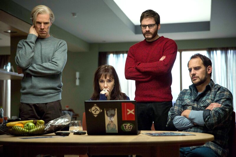 Eine einzige Internetseite lässt das Leben von (v.l.n.r.) Julian (Benedict Cumberbatch), Birgitta (Carice van Houten), Daniel (Daniel Brühl) und Marcus (Moritz Bleibtreu) aus den Fugen geraten: "WikiLeaks" lässt die Regierung zittern und den amerikanischen Geheimdienst rätseln ...Bild: © DreamWorks II Distribution Co., LLC.