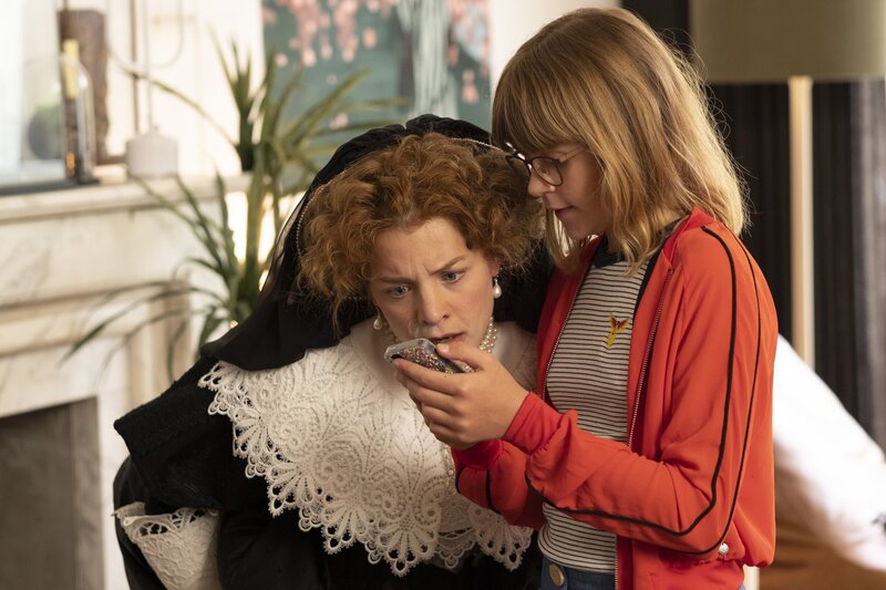 Opjen ist komplett fasziniert von Jackies Handy und richtet mit ihrem Interesse für Technik großes Chaos an.Bild: © NDR/Dinand van der Wal