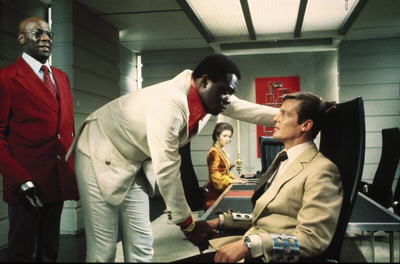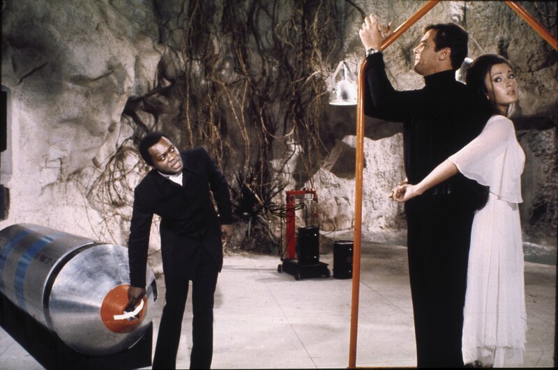 James Bond (Roger Moore) befindet sich in der Gefangenschaft von Mr. Big (Yaphet Kotto), Solitaire (Jane Seymour, im Hintergrund)) überlegt, wie sie ihm helfen kann.Bild: © TVNOW / Danjaq, LLC