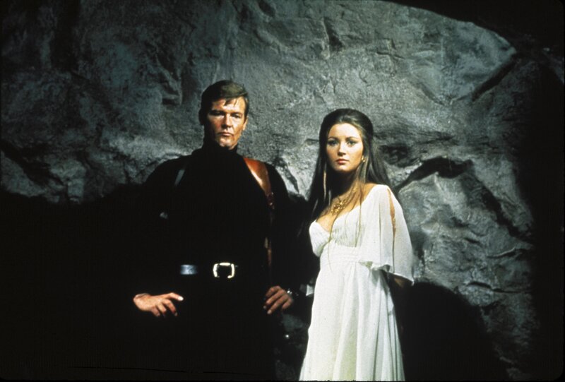 Jane Seymour (Solitaire), Roger Moore (James Bond).Bild: © ZDF/George Whitear