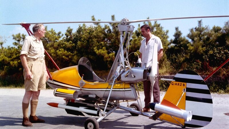 Q (Desmond Llewelyn) hat etwas Besonderes für Bond (Sean Connery, re.): einen zusammensteckbaren Mini-Hubschrauber (Little Nellie).Bild: © Mediengruppe RTL