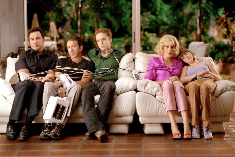 In der Hand von zwei Hobby-Kriminellen mit mobiler Atombombe: (v.l.n.r.) Walter (Patrick Warburton), Eliot (Tim Allen), sein Sohn Matt (Ben Foster), Anna (Rene Russo) und ihre Tochter Jenny (Zooey Deschanel) ...Bild: © Touchstone Pictures Lizenzbild frei