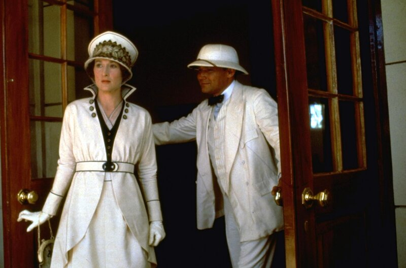 Karen (Meryl Streep, l.) ist mit ihrem Mann Bror Blixen (Klaus Maria Brandauer, r.) schon lange nicht mehr glücklich. Für die Öffentlichkeit mimt sie jedoch die zufriedene Ehefrau.Bild: © Kabel Eins Classics