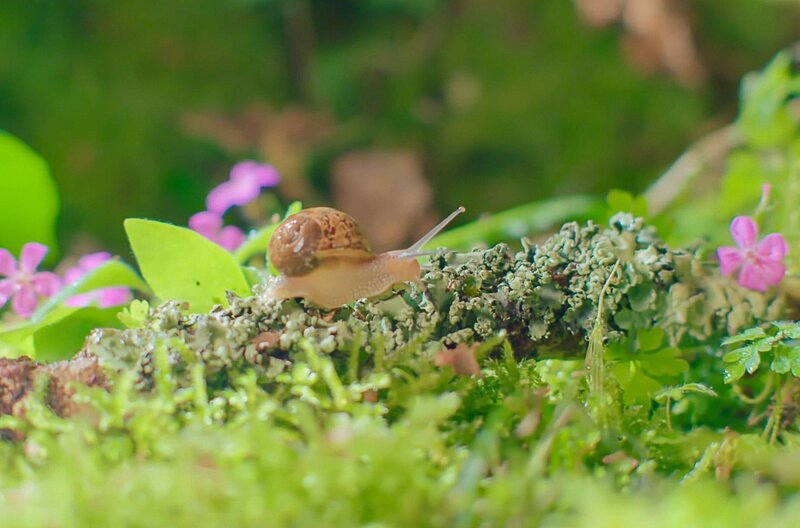 Eine Weinbergschnecke erblickt in Frankreich im Unterholz eines Waldes das Licht der Welt.Bild: © Guindala Production