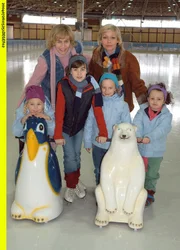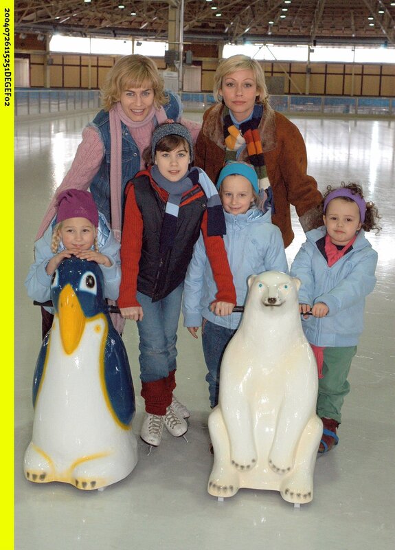 Die Kinderanwältin Judith Kemp (Jennifer Nitsch, re. hinten) unterstützt Helena Traber (Gesine Cukrowski, li. hinten) in ihrem Prozess. Judiths Tochter Julia (Roxanne Borski, 2.v.li.) geht zusammen mit Helenas Töchtern Eva (Soraya-Antoinette Richter, li.), Alina (Gina Naumann) und Debbie (Lina Stübner) zum Schlittschuh-Laufen.Bild: © ARD Degeto/ARD Degeto/Katrin Knoke