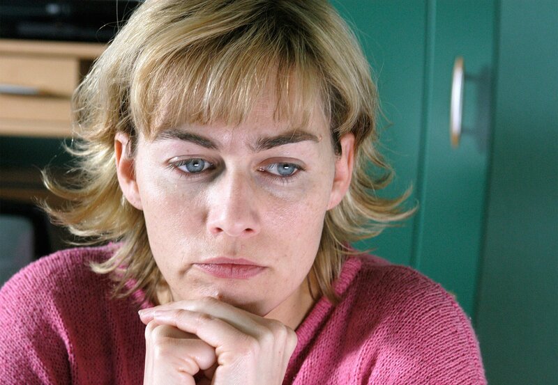 Helena Traber (Gesine Cukrowski) zögert, Judiths Hilfe anzunehmen und den Vater ihrer Kinder auf Unterhaltszahlungen zu verklagen.Bild: © ARD Degeto/ARD Degeto/Katrin Knoke