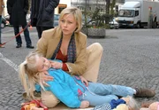 Kinderanwältin Judith Kemp (Jennifer Nitsch) findet auf der Straße die unbeaufsichtigte kleine Eva Traber (Soraya-Antoinette Richter), die vor Erschöpfung ohnmächtig geworden ist.Bild: © ARD Degeto/Katrin Knoke