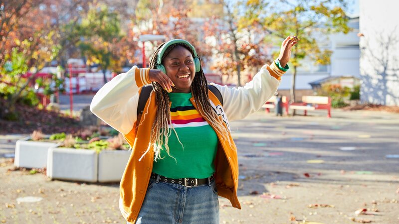 Micky (Valentin Oppermann, l.) hat einen Song für seine heimliche Liebe geschrieben. Juli (Jedidah-Isabel Annor, r.) hilft ihm dabei, ein Video zu drehen und gibt ihm Tanzunterricht.