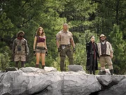 Jumanji-Spieler wider Willen: von links: Mouse (Kevin Hart), Ruby (Karen Gillan), Bravestone (Dwayne Johnson), Ming (Awkwafina) und Oberon (Jack Black).Bild: © PLURIMEDIA (Sony Pictures Releasing France)