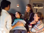 L-R: Ultrasound Technician (Kaaren de Zilva), Juno MacGuff (Elliot Page), Leah (Olivia Thirlby), Bren MacGuff (Allison Janney)Bild: © Twentieth Century Fox Film Corporation
