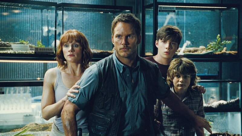 Das Unglück scheint sich im neuen Freizeitpark "Jurassic World" zu wiederholen: (V.l.:) Claire (Bryce Dallas Howard), Owen (Chris Pratt), Zach (Nick Robinson) und Gray (Ty Simpkins) kämpfen um ihr Leben.Bild: © PLURIMEDIA (Universal Pictures / Amblin Entertainment / Legendary Pictures)