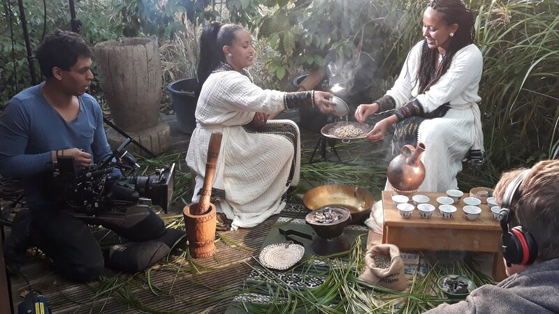 Kameramann Adnane Korchyou fängt die Inszenierung einer äthiopischen Kaffeezeremonie ein.Bild: © Moritz Herberg / ZDF