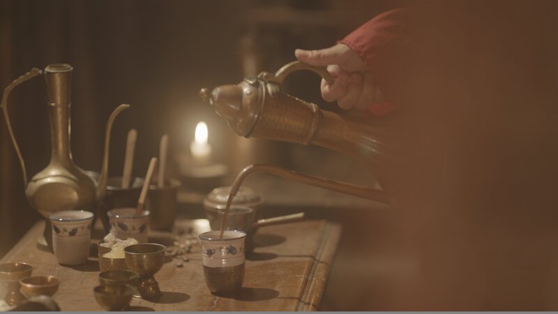 In detailreichen Spielszenen werden die Ursprünge der berühmten Bohne nachgezeichnet, so wie hier mit einem Kaffeekoch im ersten Café in Istanbul 1554.Bild: © ZDF und Leo Pinter