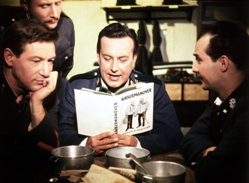 Im Wien der Kaiserzeit sorgt "Kaisermanöver", das Büchlein eines anonymen Autors, für reichlich Wirbel. Der Verfasser macht sich darin mit beißendem Spott über die veralteten Traditionen und verkrusteten Rituale der österreichischen Armeeführung lustig. Niemand ahnt, dass ausgerechnet der galante Hauptmann Eichfeld das Büchlein schrieb. Dabei soll es auch bleiben, denn Eichfeld möchte die Tochter eines Generals heiraten, dem das Spottbuch ein Dorn im Auge ist. Wien, zur Zeit der k.u.k.-Monarchie. Die ganze Stadt amüsiert sich über ein Buch mit dem Titel "Kaisermanöver", dessen unbekannter Verfasser sich mit satirischer Häme über die Zustände in der kaiserlichen Armee lustig macht. Während die einfachen Soldaten ihre helle Freude an den spöttischen Beschreibungen ihrer Vorgesetzten haben, ist die konservative Armeeführung über das Werk entsetzt. Vor allem der strenge General von Trattenbach (Harry Hardt) würde den Autor des Werkes nur zu gerne überführen. Er ahnt nicht, dass es sich bei dem Verfasser ausgerechnet um den respektablen Hauptmann Eichfeld (Rudolf Prack) handelt, der von Trattenbachs Tochter Valerie (Winnie Markus) seit geraumer Zeit den Hof macht. Der General sähe es sowieso lieber, wenn Valerie den wohlhabenden Major von Jurinic (Erik Frey) zum Mann nehmen würde. Während eines heimlichen Treffens zwischen Eichfeld und Valerie kommt es zu einer Verwechslung mit amourösen Folgen: Valeries Zofe Steffi (Hannelore Bollmann), die sich zur Tarnung ihrer Herrin als Valerie verkleidet hatte, gerät bei ihrem Ausritt in Lebensgefahr und wird von dem einfachen Armee-Zugsführer Franz Radler (Walter Müller) gerettet. Ohne den Schwindel aufzuklären, lässt Steffi sich von dem sympathischen Franz zum Essen ins Gasthaus seines Vaters (Hans Moser) ausführen. Natürlich funkt es gewaltig zwischen den beiden, und es ist nur eine Frage der Zeit, bis Steffis Maskerade auffliegt. Unterdessen findet der eifersüchtige Major von Jurinic heraus, wer der Verfasser des "Kaisermanövers" ist. Sofort gibt er diese Information an Trattenbach weiter. Eichfeld, der nun endgültig in Ungnade gefallen ist, fordert von seinem Kontrahenten Satisfaktion. Valerie versucht mit allen Mitteln, dieses Duell zu verhindern, denn sie weiß, dass Jurinic als bester Schütze des gesamten Regiments gilt. Unterhaltungs-Spezialist Franz Antel hat mit "Kaisermanöver" einen romantischen Kostümfilm in Starbesetzung inszeniert. Die gestrenge k.u.k.-Armee bildet dabei das Umfeld für eine heiter-wehmütige Geschichte, in der gleich zwei Liebespaare nach allerlei Wirrungen am Ende zueinanderfinden: Die Publikumslieblinge Rudolf Prack und Winnie Markus geben dabei das herrschaftliche Paar, Walter Müller und Hannelore Bollmann bilden das kleinbürgerliche, aber nicht minder anrührende Gegenstück. In weiteren Rollen spielen Hans Moser und Erik Frey. und andere.