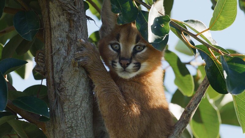 Die jungen Karakal-Katzen erkunden bereits eigenständig die Gegend.Bild: © ARTE / Saint Thomas Productions