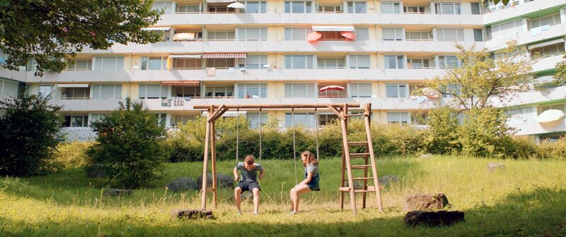 Emma (Sara Kärcher) und Lasse (Leon Lerch) beim Schaukeln auf dem Spielplatz.Bild: © MDR/Filmakademie Baden-Württemberg