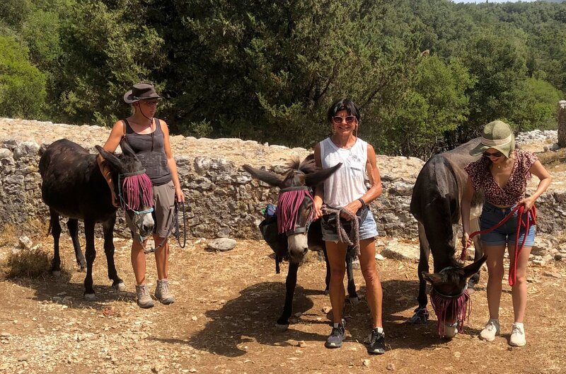 Katharina (li.) bietet geführte Eselwanderungen über die Insel Kefalonia.Bild: © HR/Detlef Dinges