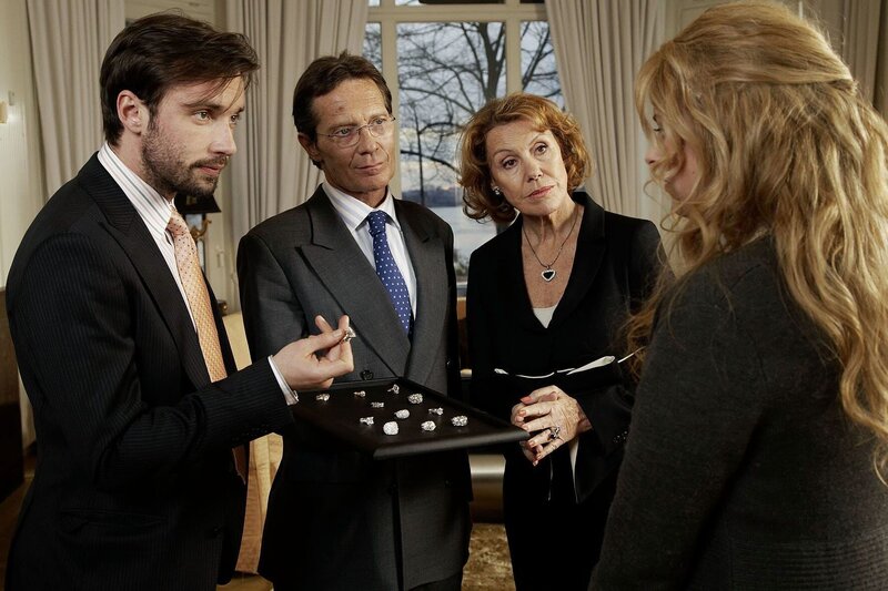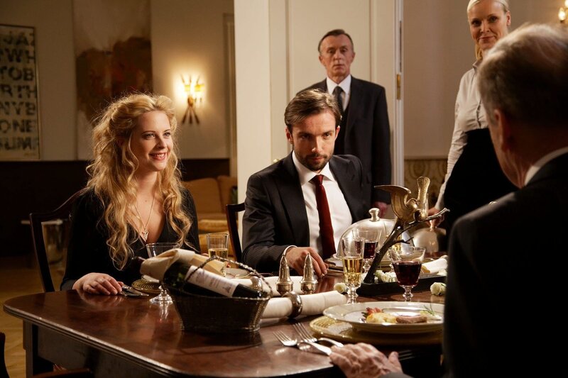 Max von Fürstenberg (Lucas Gregorowicz, 2.v.l.) liebt Jana (Diana Amft, l.) über alles. Bereits in der vierten Woche ihrer Bekanntschaft macht er ihr einen Heiratsantrag und lädt sie zu seinen Eltern ein ...Bild: © Dirk Dunkelberg