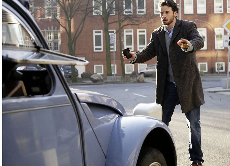 Als Geist kann Tom (Stephan Luca) auch mal eigenartige Fortbewegungsmittel nutzen. Um Jana nicht aus den Augen zu verlieren, setzt er sich einfach auf ihr Autodach ...Bild: © ATV II