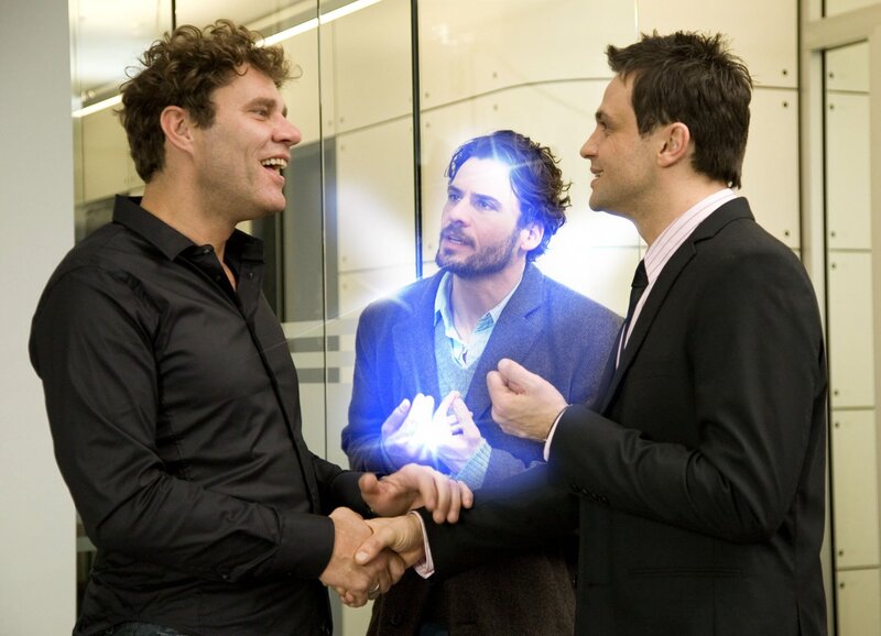 Zunächst kann sein Chef (Wolfgang Maria Bauer, l.) nicht glauben, dass ausgerechnet der Versager Torsten Lang (Michael Rotschopf, r.) diese tolle Erfindung gemacht hat. Doch zu Toms (Stephan Luca, M.) großem Entsetzen beginnt er dann doch, an dessen Geschichte zu glauben ...Bild: © ATV II