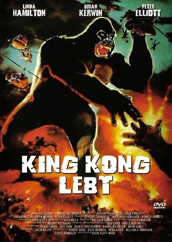 King Kong hat den Sturz vom World Trade Center überlebt und liegt seit langem im Koma. Um ihn zu retten, will ihm die Ärztin Amy Franklin (Linda Hamilton) ein künstliches Herz einpflanzen. Doch für die Operation braucht sie jede Menge Affenblut. Da fügt es sich, dass der Biologe Hank Mitchell (Brian Kerwin) eine Kong-Dame im Dschungel entdeckt... Während der erste Teil von 1976 noch ein echter Kassenschlager war und sogar Oscar-Nominierungen verzeichnen konnte, wurde "King Kong lebt" zum absoluten Flop und von den Kritikern verrissen. Weltweit spielte er lediglich 4,7 Millionen US-Dollar ein.