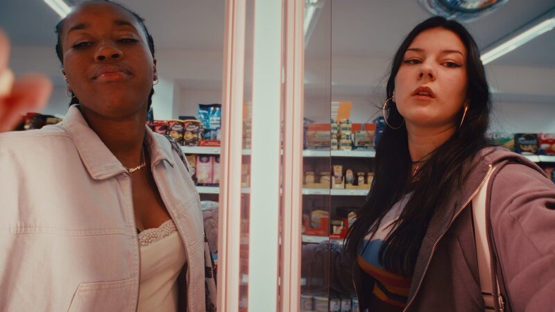 Von links: Carina (Marie Rosie Merz) und Denise (Lea Schmidt) auf Beutezug.Bild: © Petra Barkhausen / Hamburg Media School