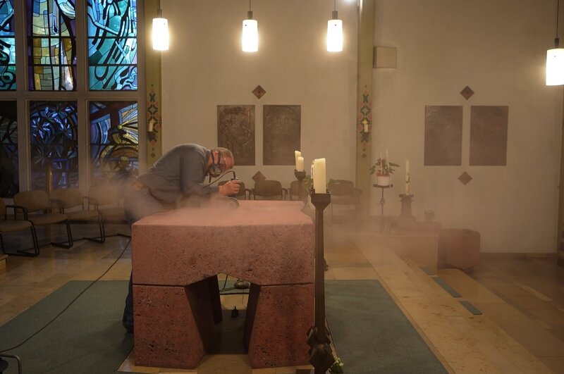 Die Entnahme der Reliquie aus dem Altar: Ein Ritual, das die Profanierung der Kirche markiert. Ein symbolischer Moment des Abschieds.Bild: © ZDF und Henrike Kolletzki (ifage)