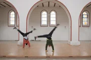 Akrobatik in der leeren Kirche in Hettstedt, die ein junges Paar ersteigert hat: Aus dem Gotteshaus soll ein Ort für Kunst, Kultur und Gemeinschaft werden.Bild: © ZDF und Thomas Beckmann (ifage)