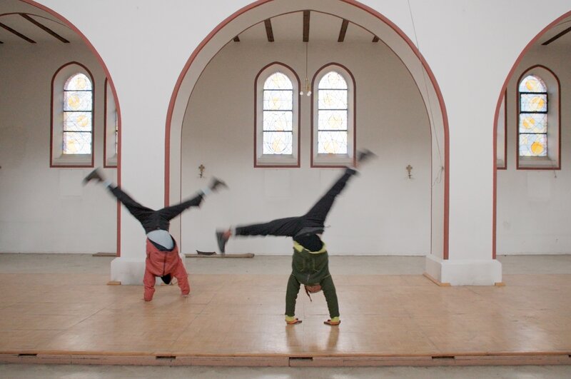 Ein ungewohnter Anblick: Handstand auf dem Altar – wenn eine alte Kirche zum kreativen Raum wird.Bild: © Thomas Beckmann (ifage)