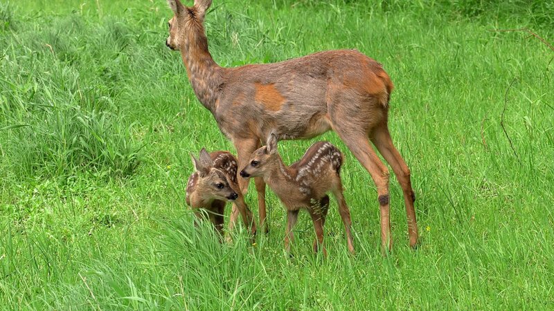 Wenn Rehgeißen sich auf Nahrungssuche begeben, lassen sie ihre Jungen häufig im Dickicht der Wälder zurück - zu schwach sind die kleinen Rehe kurz nach der Geburt, um der Mutter zu folgen. Schutzlos und allein in der Natur zurückgeblieben, ist die einzige "Waffe" der Kitze, sich für ihre Feinde quasi unsichtbar zu machen. Die weißen Flecken auf ihrem Rücken helfen ihnen dabei. Doch nicht nur Rehkitze verfügen über diese spezielle Tarnung, die im Fachjargon als Somatolyse bezeichnet wird. Der Feldhase etwa ist, obwohl er eigentlich nur ein schlichtes, braunes Haarkleid trägt, ein Meister der Tarnung. Die feinen Farbnuancen seines Fells lassen ihn mit seiner Umgebung verschmelzen, sodass Hasenbabys oft nicht einmal aus einem Meter Entfernung zu erkennen sind. Auch das Fell junger Wildschweine ist mit weißen Streifen durchzogen und macht sie zwischen Bäumen und Sträuchern unsichtbar. Wie auch bei den Jungrehen gehen die Tarnmuster im Laufe ihres ersten Lebensjahres verloren. Doch bereits seit Jahrtausenden genügt diese Finesse der Evolution, um das Überleben dieser Arten zu sichern. In der Dokumentation begleitet der österreichische Tierfilmer Kurt Mündl das Heranwachsen eines Rehkitzes und zeigt, welche ausgefeilten Tarnstrategien Kitz und Co. vor ihren natürlichen Feinden schützen sollen. Das Phänomen tritt nicht nur bei Säugetieren auf. Auch Wildvögel bedienen sich einer speziellen Farbmusterung, um in ihrem Lebensraum so wenig wie möglich aufzufallen. Wesentlich bei allen Meistern der Tarnung ist ihre Fähigkeit, völlig unbewegt auszuharren, auch wenn Menschen oder Tiere in ihre Nähe geraten.