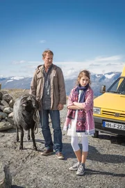 Aussichtsloses Bemühen von Jakob (Wotan Wilke Möhring, l.) seine Tochter Mai (Sofia Bolotina,r.) kennenzulernen. Sie ist genauso stur wie der Bock, den sie nach Norwegen transportieren müssen.Bild: © ZDF und Georges Pauly