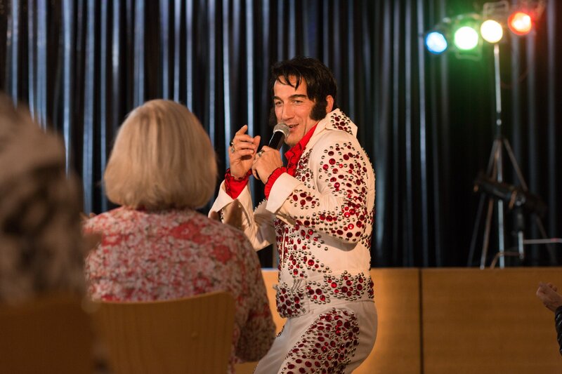 Jakob (Wotan Wilke Möhring) rockt als Elvis-Imitator die Altenheime.Bild: © ORF/Paramount Pictures/dieFilm GmbH/Majestic Filmproduktion GmbH/Georges Pauly